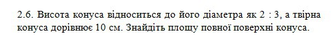 1) Высота конуса относится к его радиусу, как 2 : 1,5 = 4 : 3.