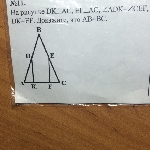 из всего этого следует, что треугольники ADK и FEC подобны.следовательно углы DAK и ECF равны, а это так же углы при основании в треугольнике ABC, что значит, что треугольник ABC - равнобедренный, следовательно АВ = ВС
