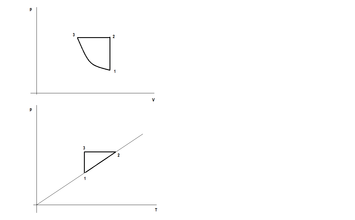 На рисунке представлен замкнутый цикл. Вычертить эту диаграмму в координатах р, V и р, Т.
