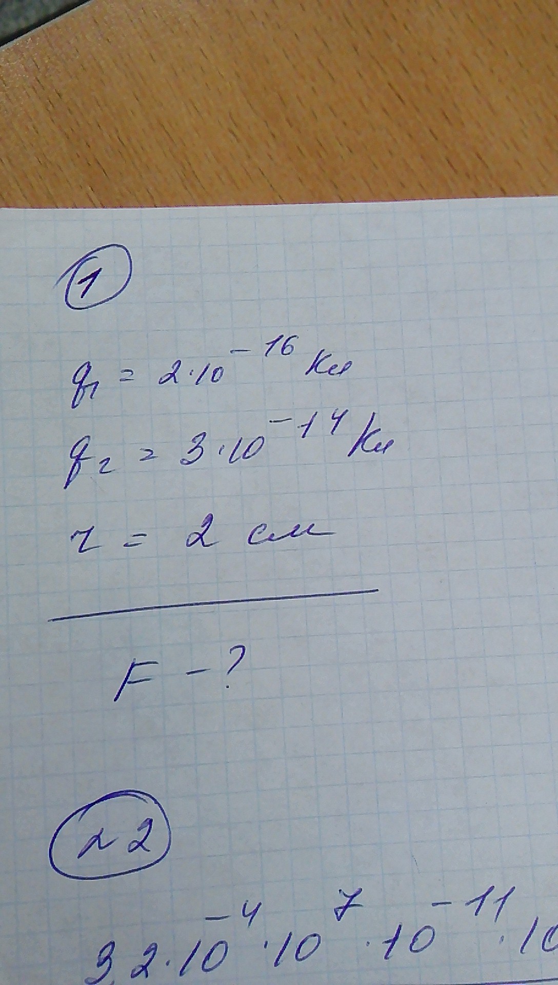 F=k*q1*q2/R^2=9*10^9*2*10^-16*3*10^-14/4*10^-2=13,5*10^-19 H