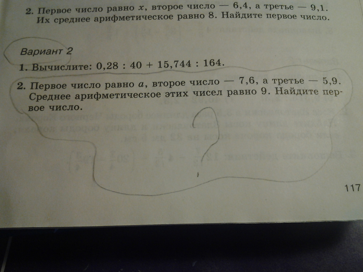 Первое число равно а , а второе - 7,6,а третье-5,9.Среднее арифметическое этих чисел равно 9. Найдите первое число.