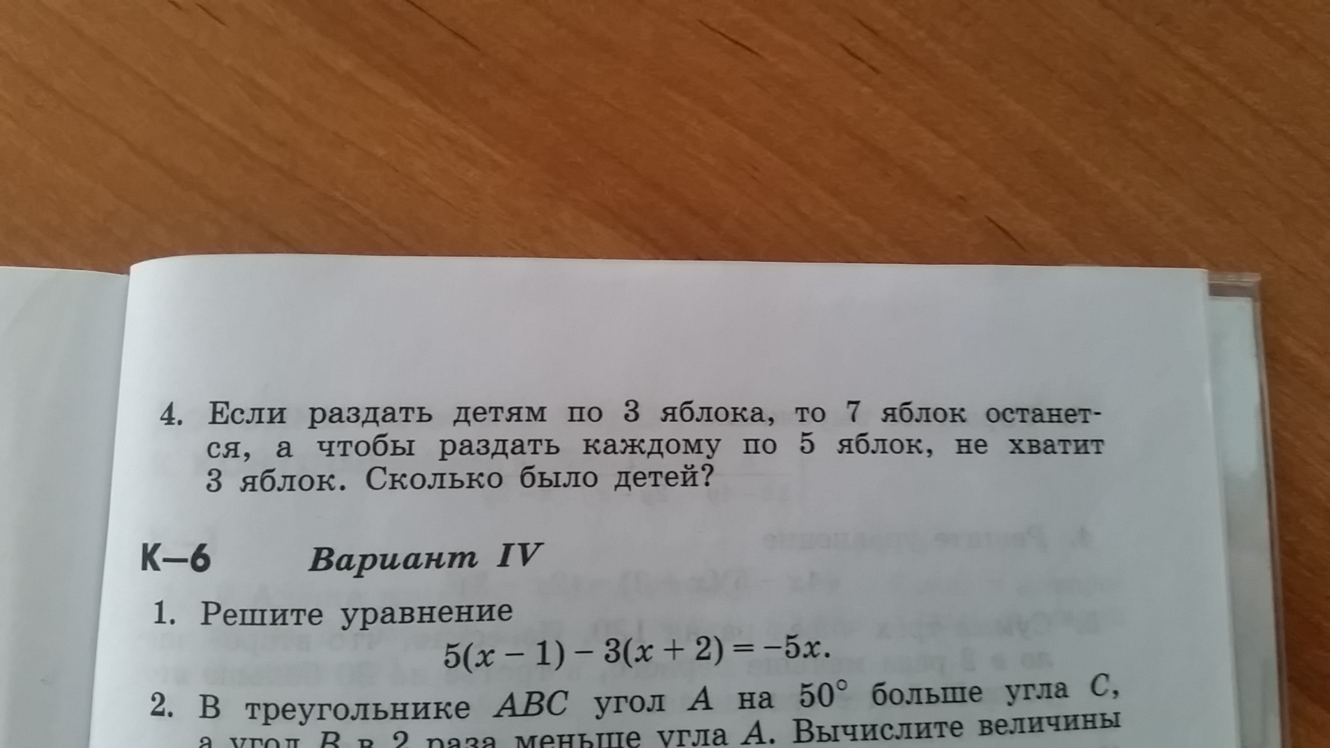 Было Х детей. Тогда посчитаем сколько яблок в обоих случаях. 3х+7 и 5х-3. Число яблок при обеих вариантах раздачи одно. Поэтому приравниваем