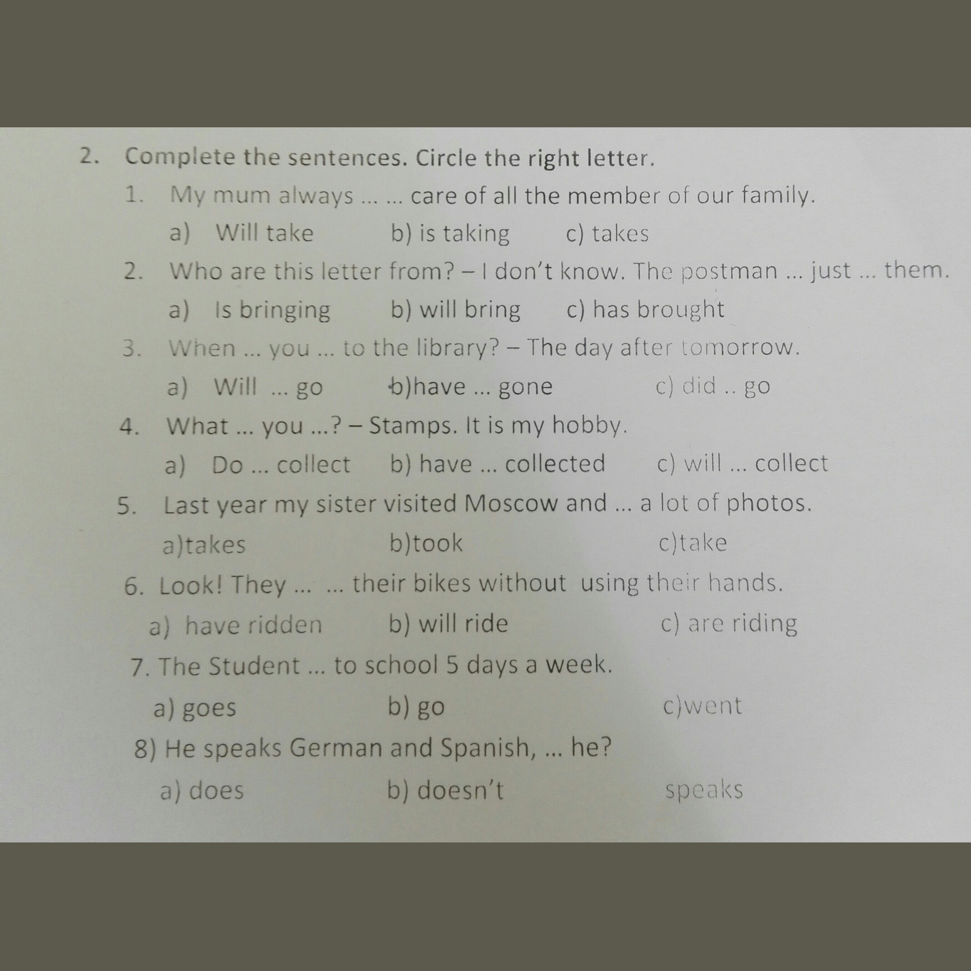 Помогите с английским, пожалуйста. 7ой класс. Complete the sentences. Circle the right letter