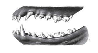 Зубы данного животного хороши дифференцированы, то есть различаются по внешнему виду. на конце челюсти находятся резцы, затем идут сильно-выдающиеся клыки, после которых идут малые коренные и большие коренные зубы. Такое строение челюстного аппарата характерно для хищных млекопитающих.