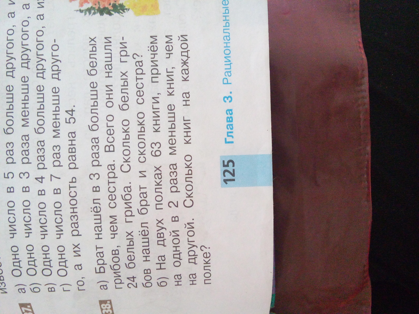 Пусть сестра собрала Х грибов. Тогда брат собрал (в 3 раза больше) 3*Х. Вместе они собрали 24 гриба. Значит, Х+3*Х=24 → 4*Х=24 → Х= 24/4=6. Значит, сестра собрала 6 грибов, а брат 24-6=18 грибов