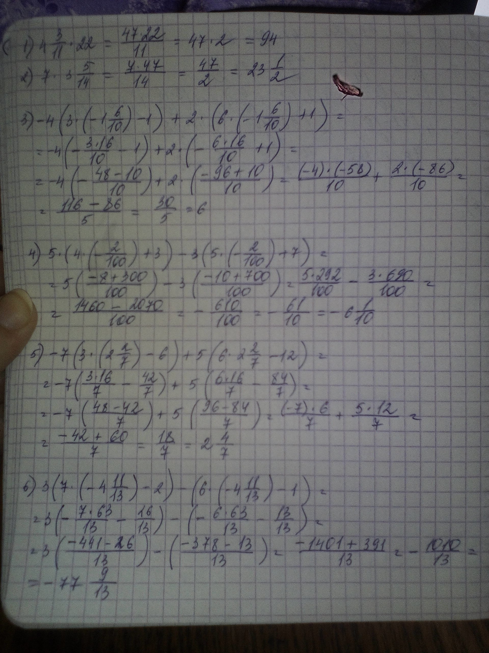 3 (7 * (-4 11/13) -2 ) - (6* (-4 11/13) -1)=