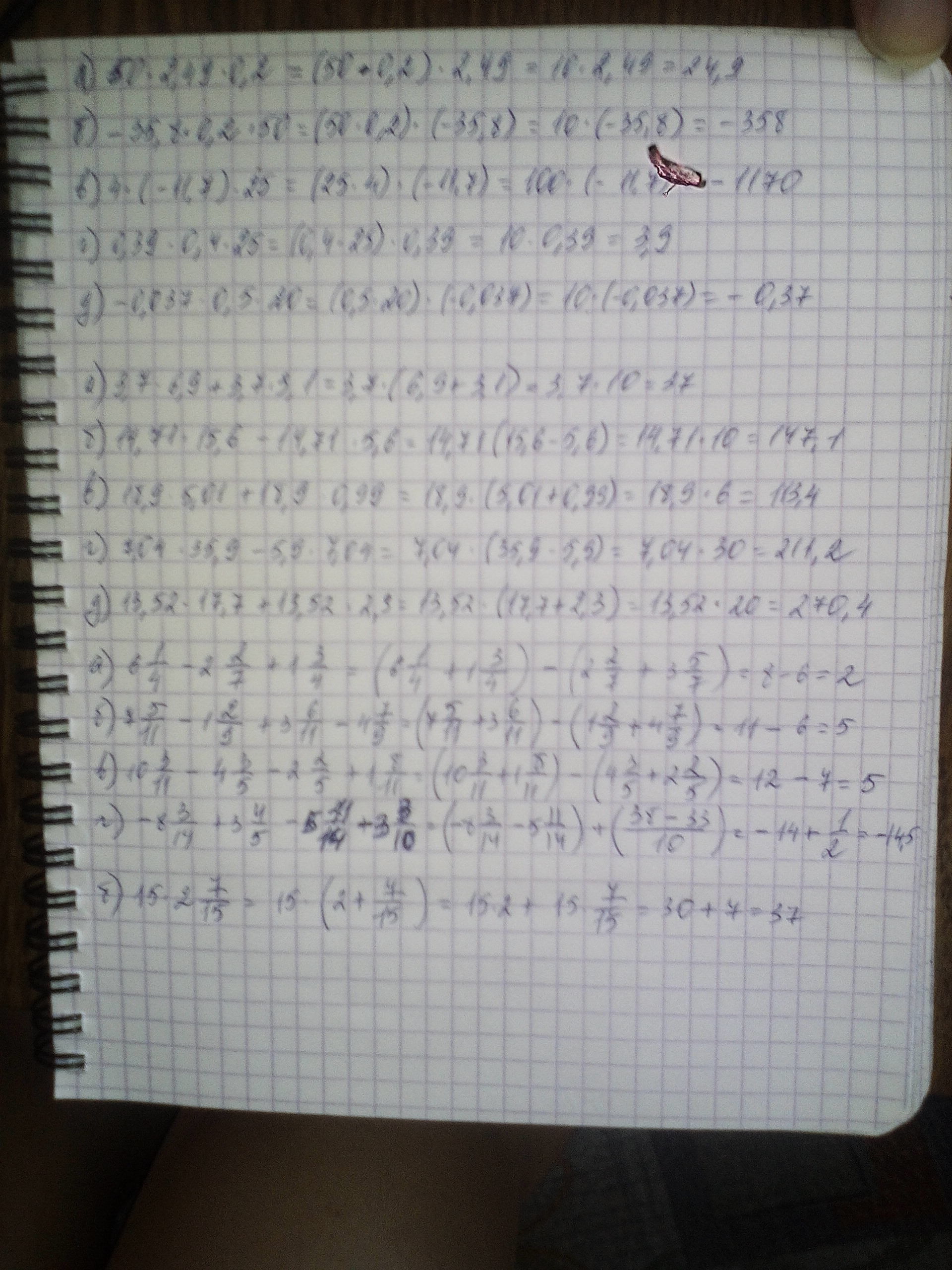 г) 7,04 *35,9 -5,9*7,04 = 7,04*( 35,9-5,9) = 7,04 * 30= 211,2
