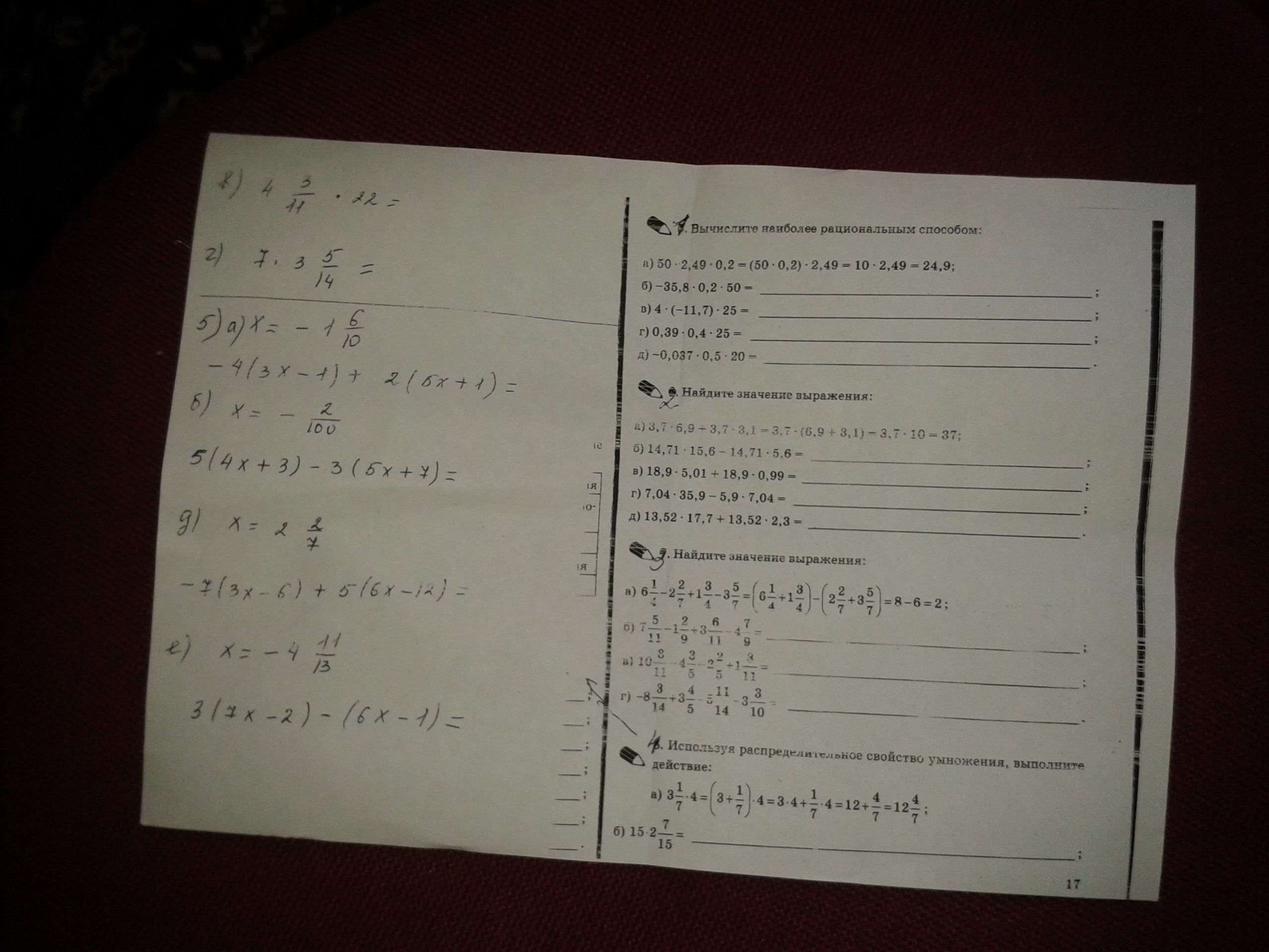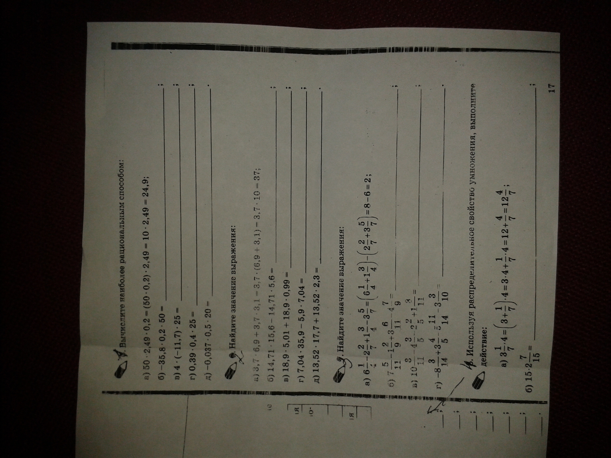 г) 7 * 3 5/14 = 7*3 + 7/1 * 5/14 =
