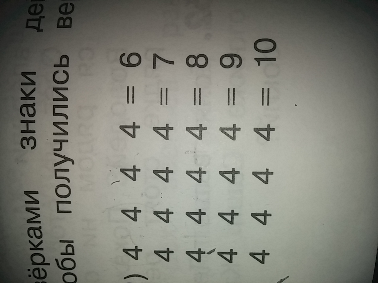 поставь между четвёрками знаки действий и скобки так,что бы получились верные равенства