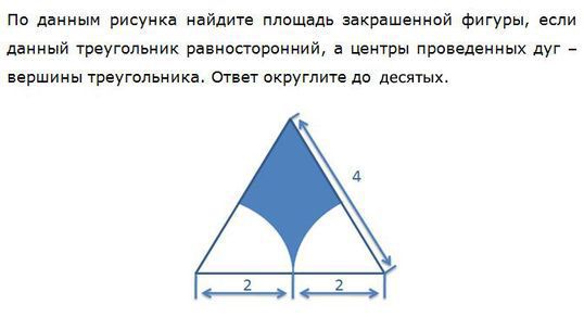 Площадь равна разности площадей треугольника и 2-х секторов по 60гр