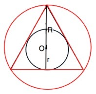 Центр вписанной в треугольник окружности лежит в точке пересечения биссектрис. Центр описанной окружности лежит в точке пересечения срединных перпендикуляров. В правильном треугольнике биссектрисы являются его высотами и медианами, а срединные перпендикуляры – высоты. Точки пересечения биссектрис, высот и медиан правильного треугольника совпадают. Точка пересечения медиан делит их в отношении 2:1, считая от вершины. Следовательно, радиус окружности, описанной около правильного треугольника, равен 2/3 его высоты, радиус вписанной в него окружности равен 1/3 высоты, т.е. половине радиуса описанной окружности.
