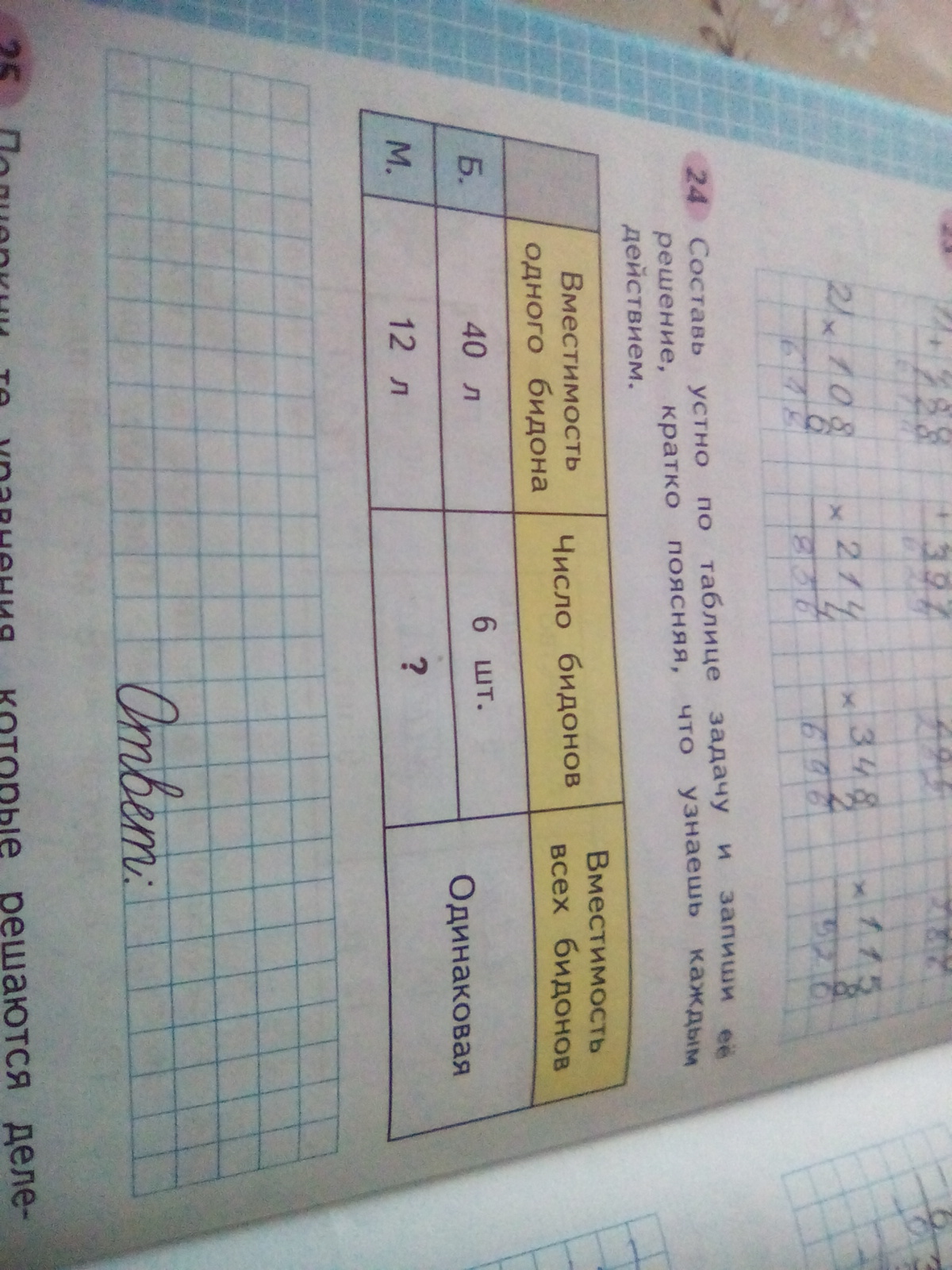 1) 40×6=240(л)<br />2)240:12=20(ш)
