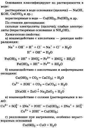Основания, их классификация и свойства на основе представлений об электролитической диссоциации.