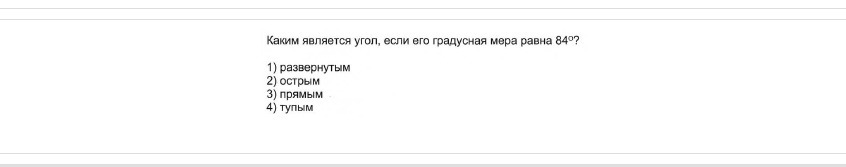 Смотрите, тупой угол больше 90 градусов, острый меньше 90 градусов, прямой 90 градусов, развернутый 180 градусов