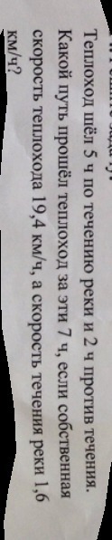 2)19.4-1.6=17.8(км/ч) скор теплохода против течения