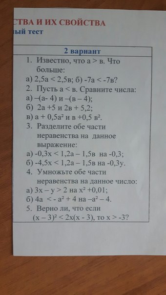 5 задание: х^2-6х+9<2х^2-6х ,если х>-3,можно взять тогда число -2, тогда получается (-2)^2-6*(-2)+9<2*(-2)^2-6*(-2), все выражаем и получается 4+12+9<8+12, получается 25<20