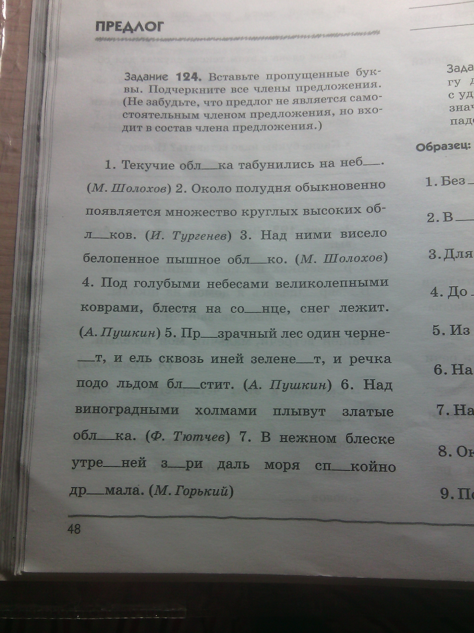 Вставьте пропущенные буквы. Подчеркните все члены предложения.( не забудьте, что предлог не является самостоятельным членом предложения, но входит в состав члены предложения)