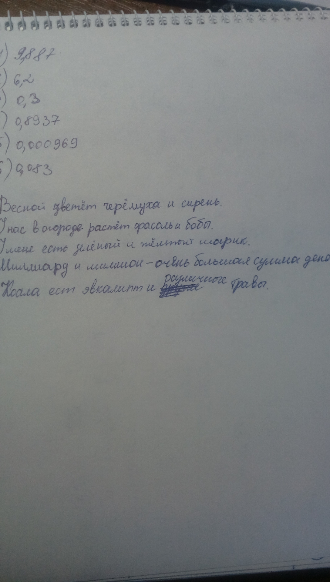 Надо составить 5 предложений с однородными членами предложения. Со словарными словами: сирень, зеленый, миллиард, эвкалипт, фасоль