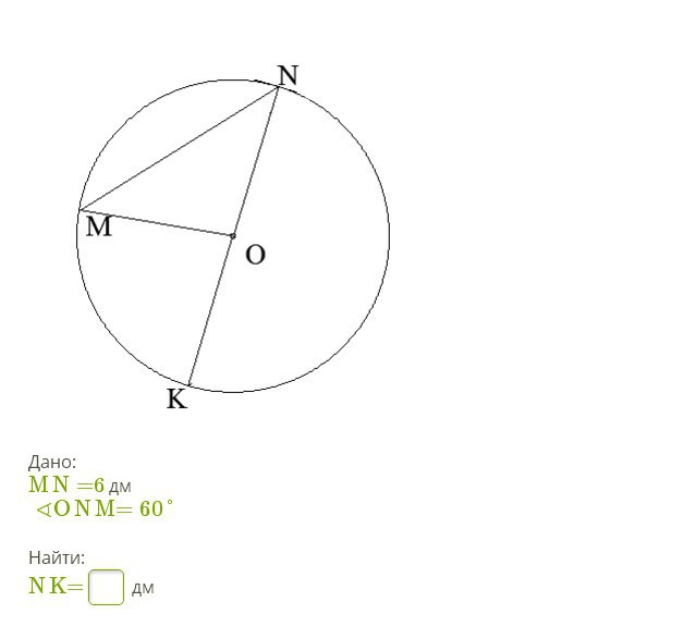 Угол NМO равен 180-60-90=30 гр . По оксиоме о катете, противолежащему 30 градусам он равен 1/2 гипотенузы. ON=R=3см. диаметр равен 2R=2*3=6. NK=6 см