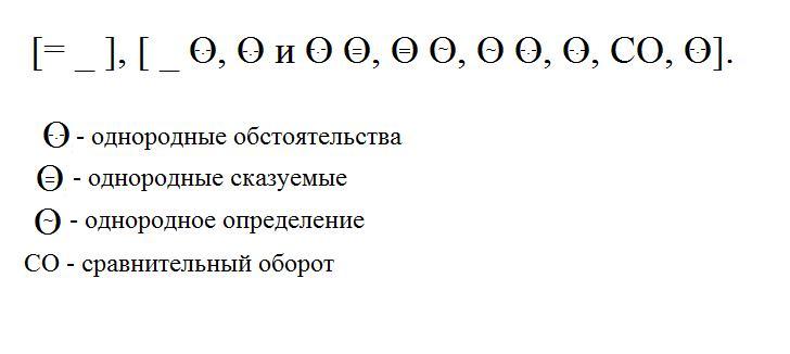 Взошёл (=) месяц, его (~) сияние (однород. =) причудливо (однород. _._._), пестро (однород. _._._) и таинственно (однород. _._._) осветило (=) лес (_ _ _), легло (однород. =) среди мрака (_._._) неровными (однород ~), иссиня-бледными (однород ~) пятнами (_._._) на корявые (~) стволы (однород. _._._), на изогнутые (~) сучья (однород. _._._), на мягкий (~), как плюшевый ковер (сравнительный оборот), мох (однород. _._._).
