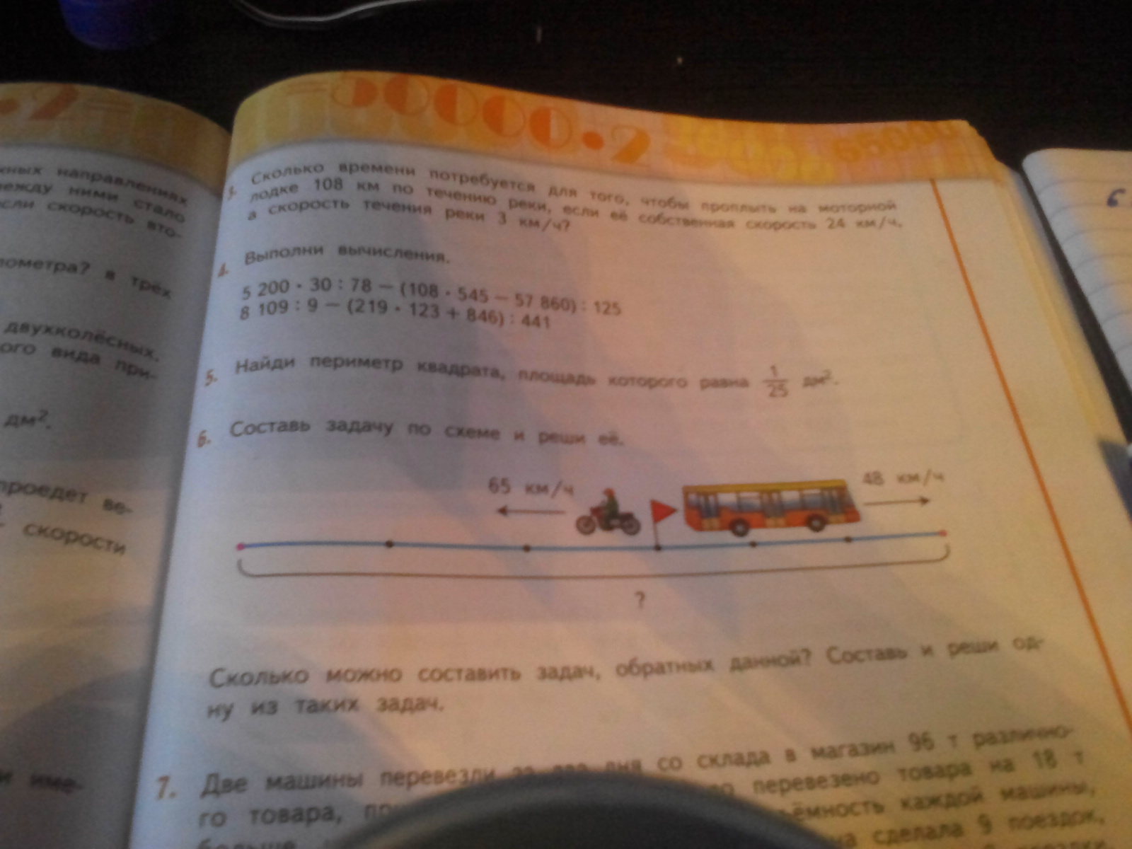 Ну, тут сложнее решать, поэтому ещё можно так: Мотоцикл со скоростью 65 км/ч и автобус со скоростью 48 км/ч выехали навстречу друг другу. Какое расстояние между ними, если они встретились через 3 часа.