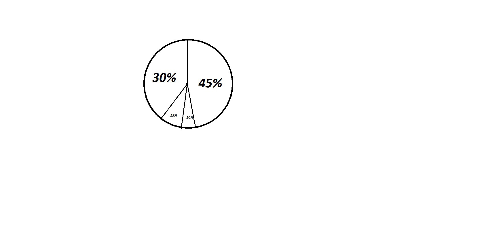 по результатам написания контрольной работы оценкиучащихся класса распределились следующим образом: пятерки - 15% четверки - 30% тройки - 45% двойки - 10% постройте круговую диаграмму по данным результатам, если известно, что в классе 30 человек