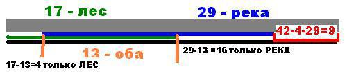 художник Небеснов за месяц работы написал 42 картины. на 17 из них есть лес,на 29 река. а на 13 и то и другое. на остальных картинах "не пойми что". сколько картин изображает не пойми что?