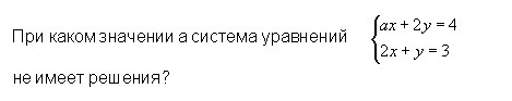 Система линейных уравнений не имеет решений тогда и только тогда,когда коэффициенты при X относятся ,как коэффициенты при Y, и не относятся ,как свободные члены: