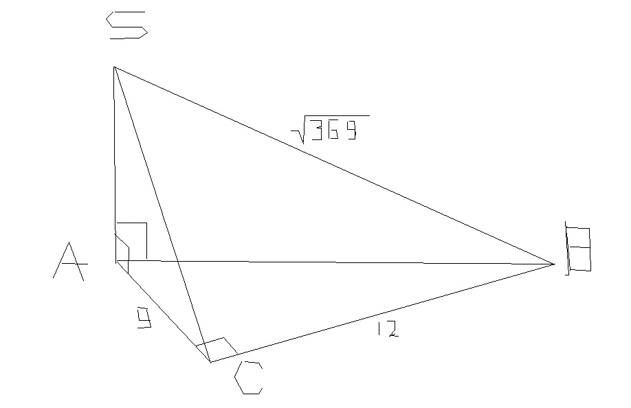 Основание пирамиды - прямоугольный треугольник с катетами 9 и 12. Боковые грани пирамиды содержащие меньший катет и гипотенузу основания перпендикулярны к плоскости основания. наибольшее боковое ребро равно корню из 369. №1 Обоснуйте положение высоты пирамиды. №2 Найдите площадь наибольшей боковой грани пирамиды.