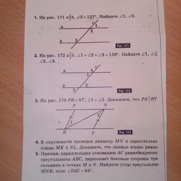 углы 1,2, 3 равны - а значит, угол 1=2=3=159°/3=53°. угол 1 +4 =180° как смежные, а значит угол 4 = 180-53= 127°
