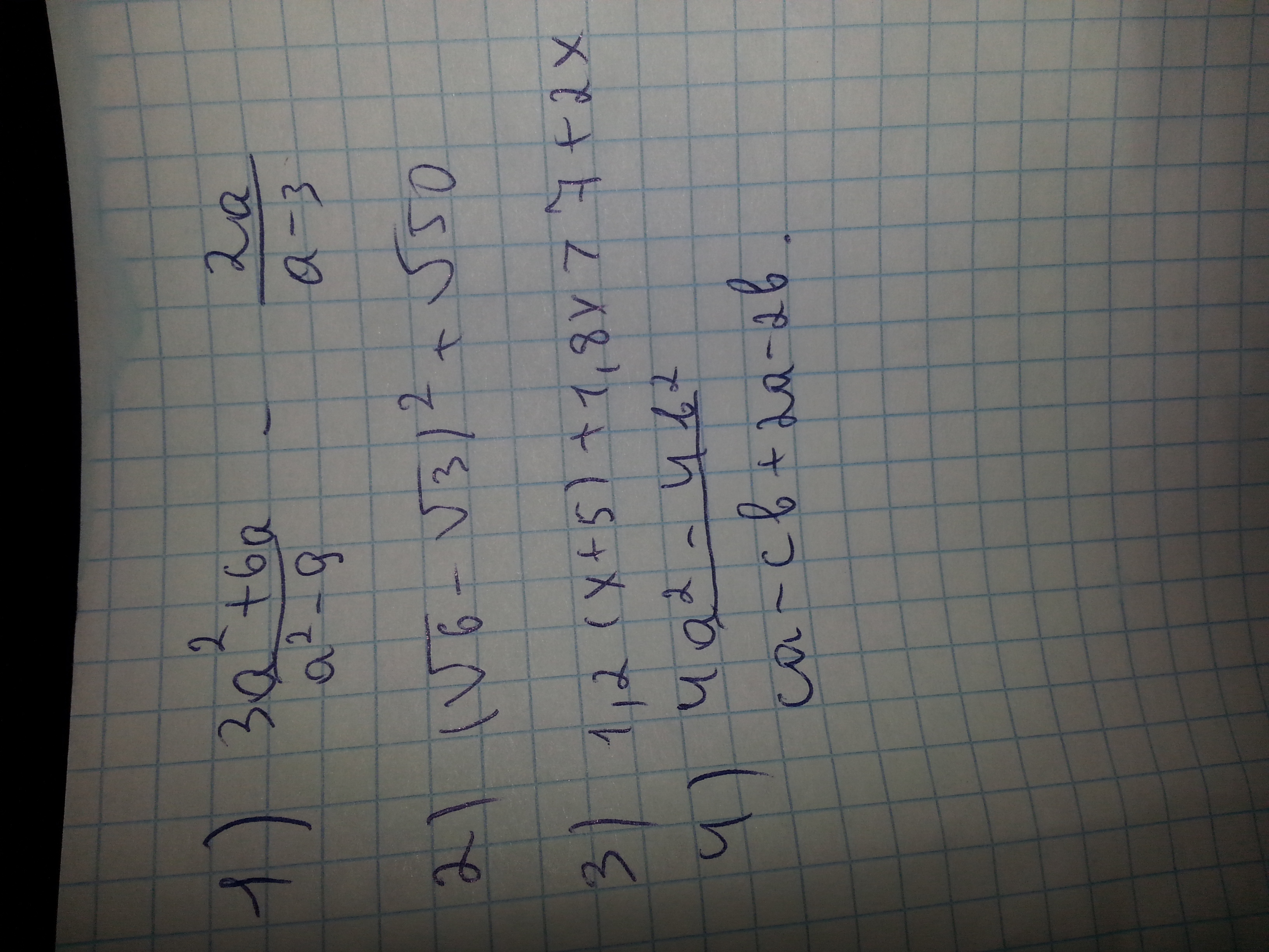 (3а²+6а)/(а²-9) - 2а/(а-3)= (3а²+6а - 2а(а+3))/(а²-9) = (3а²+6а-2а²-6а)/(а²-9)=а²/(а²-9)