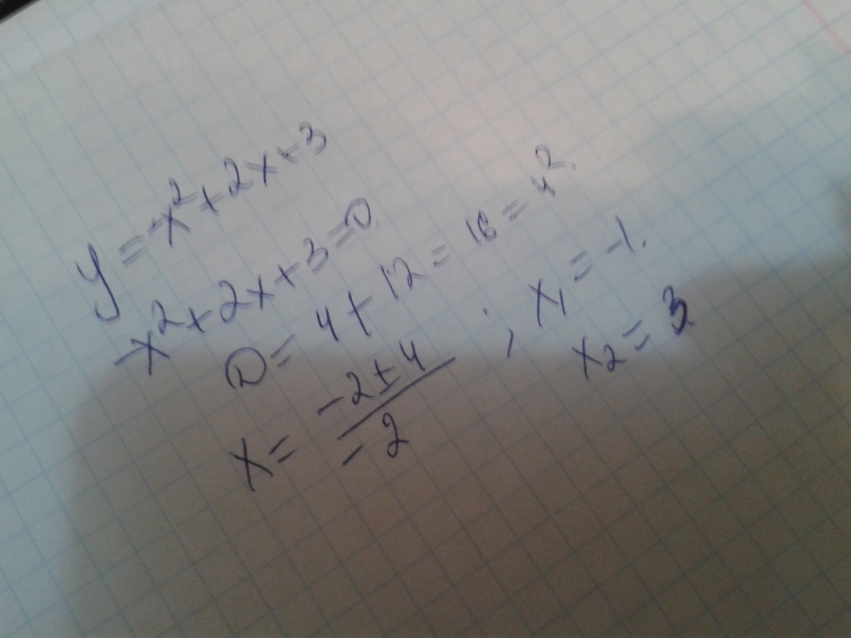 С помощью графика функции у=-х^2+2х+3 найти значение х, при которых значение функции равно 3..Плииииииз:(