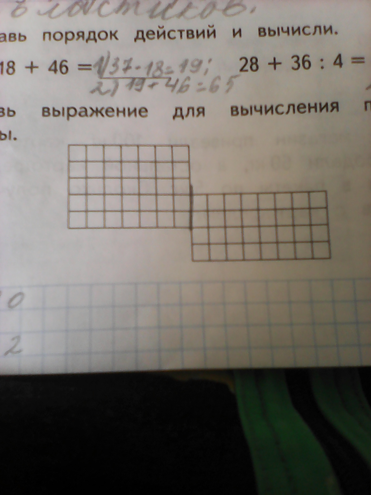 S= a×b - фомула нахождения площади. Проще говоря площадь равна длину нужно умножить на ширину. По фотографии - 7×5+8×4=67