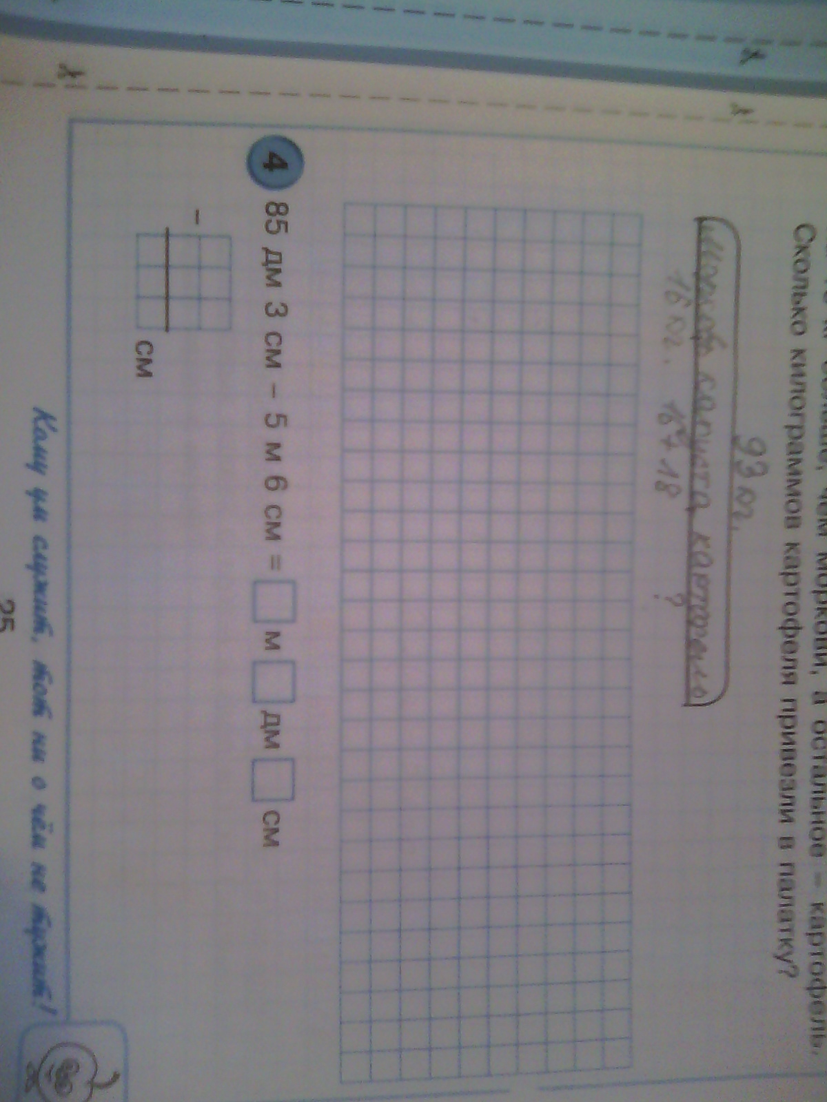 вот какая задача : в палатку привезли 93 кг овощей: моркови - 16 кг , капусты - на 18 кг больше, чем моркови, а остальное - картофель . сколько килограммов картофеля привезли в палатку ?