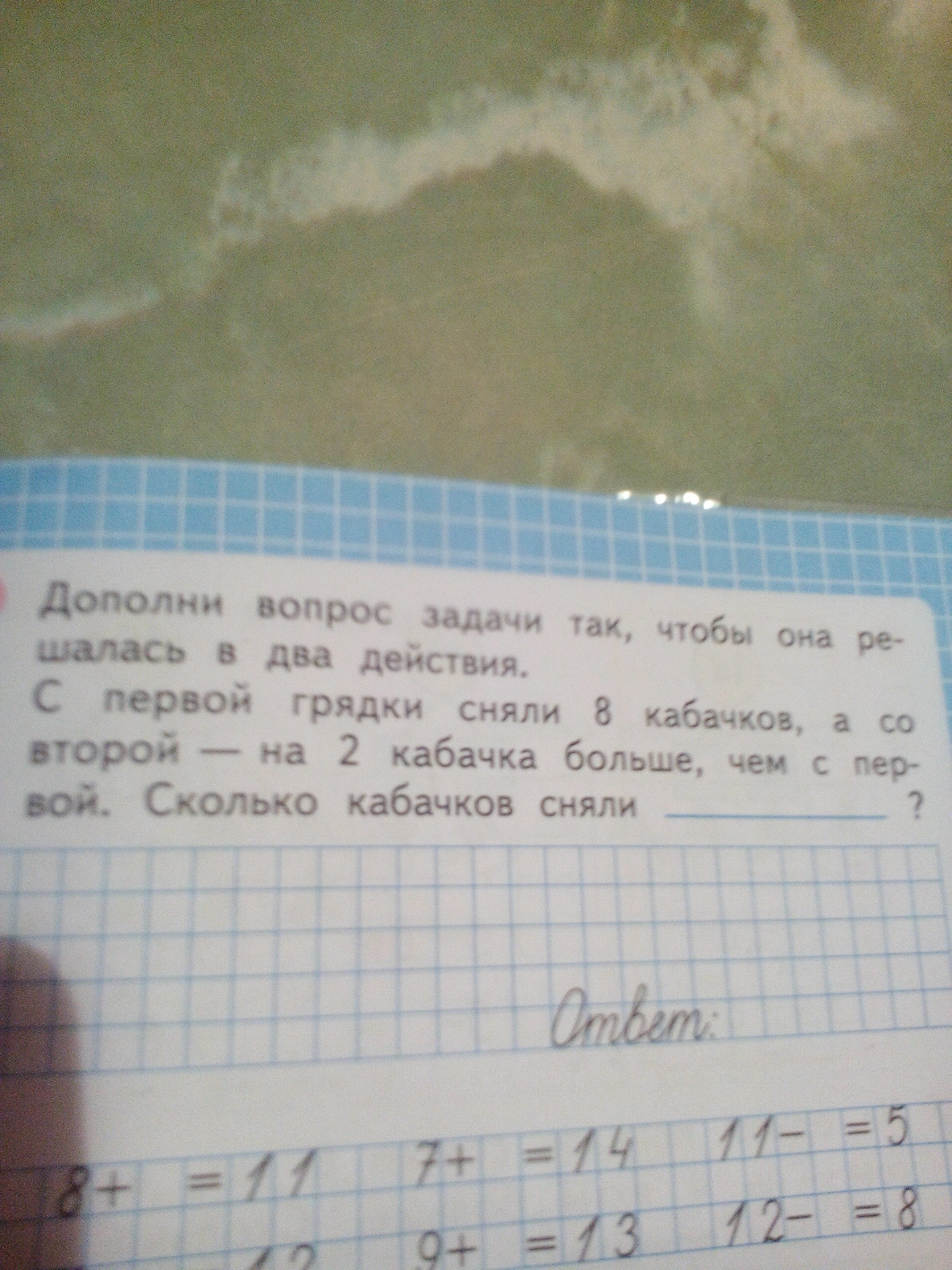 1)8+2=10(кабачков )- сняли со второй грядки.