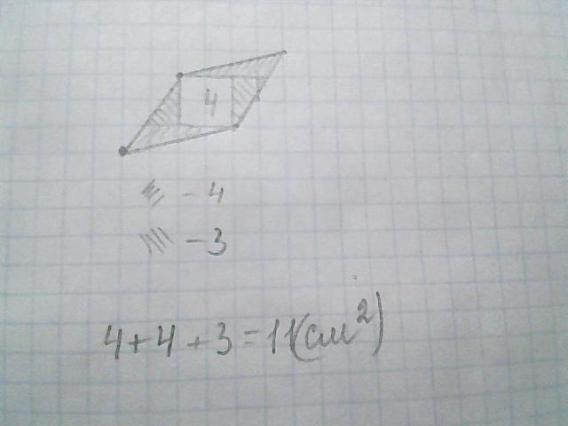 Найдите площадь четырёхугольника, изображённого на рисунке+ если стороны клеток равны 1 см. Ответ дайте в квадратных сантиметрах.