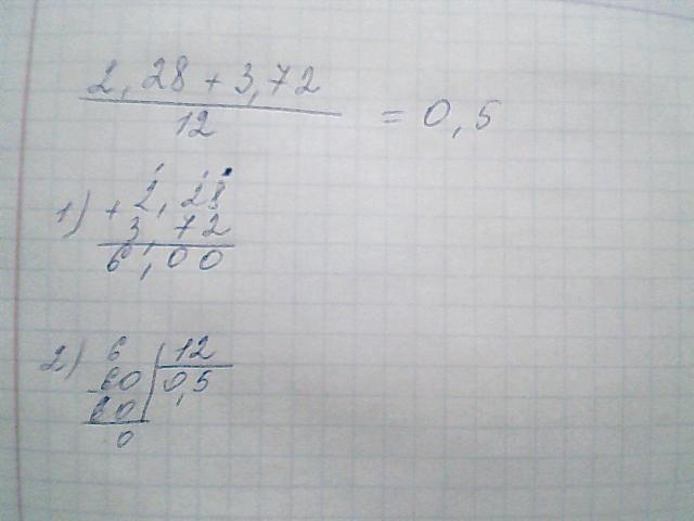 2,28 + 3,72 : 12 = 2,28 + 0.31 = 2.59