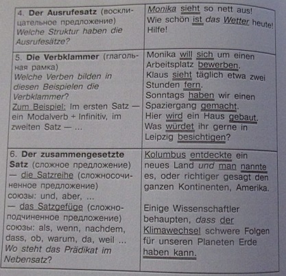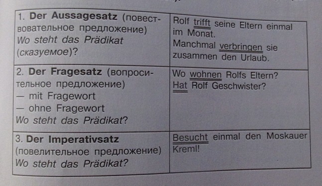 Помогите с немецким, нужно прижумать 6 предложений на каждое из правил и написать их перевод (правила в левой колонке таблицы, где есть подпункты там на