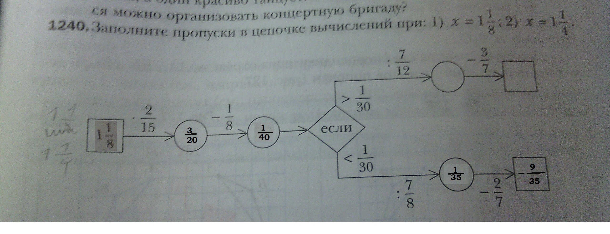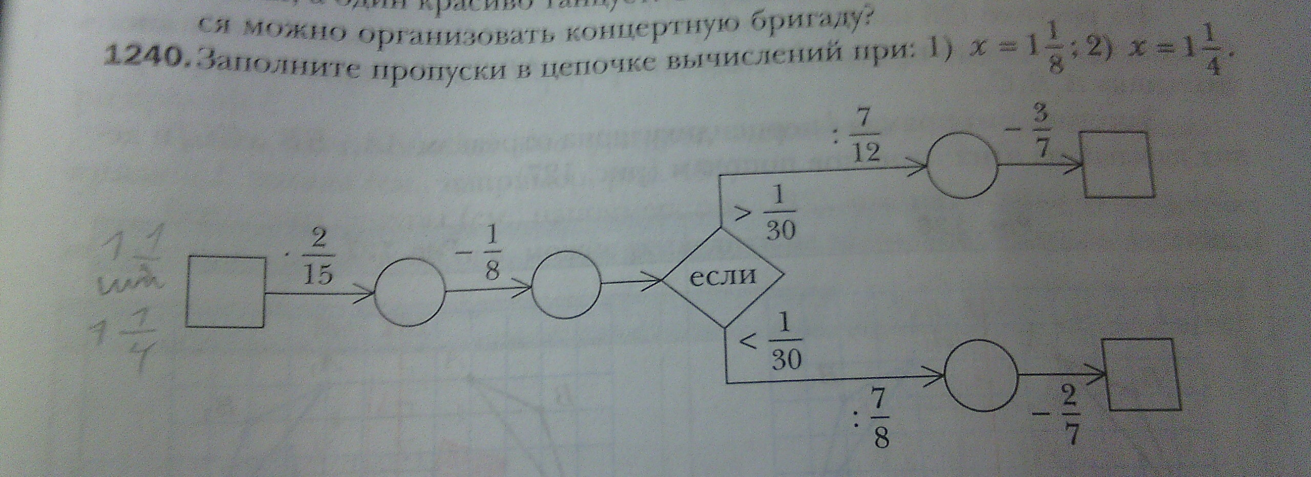 2) 5/4*2/15=1/6-1/8=(4-3)/24=1/24*12/7=1/14-3/7=(1-6)/14=-5/14