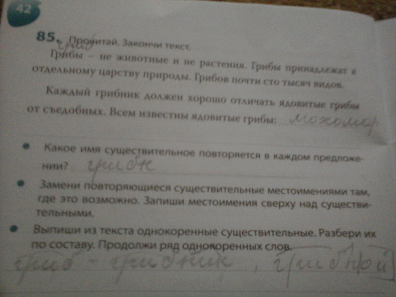 Нет , второе задание не выполнено . Так как там написано что надо убрать повторение слов , значит надо заменить слово гриб на что-то другое , или же синоним , или местоимение