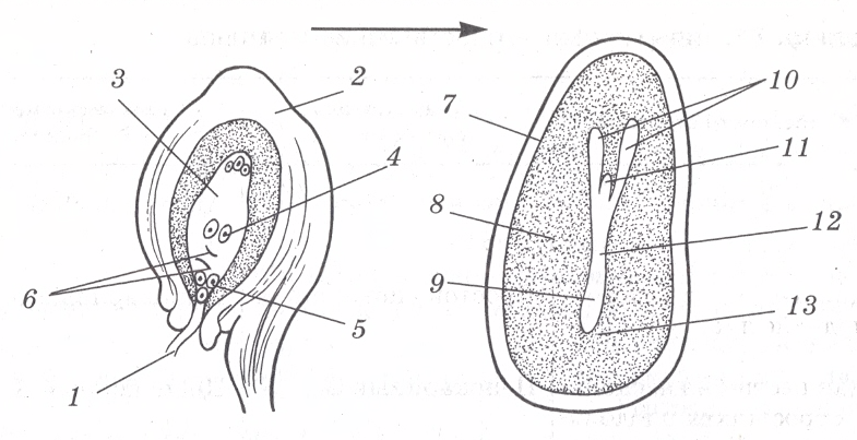 1. пыльцевая трубка по которой спускаются 2 спермия.