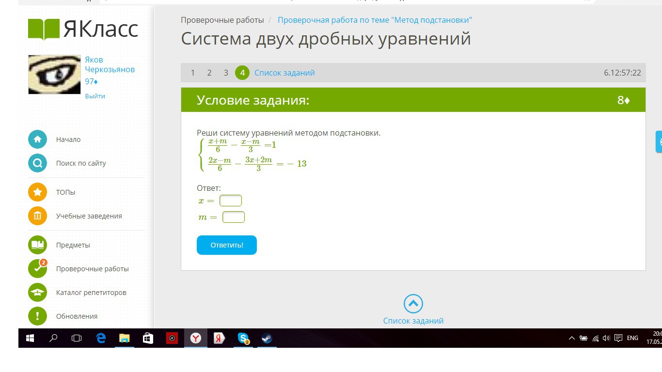 Реши систему уравнений методом подстановки.