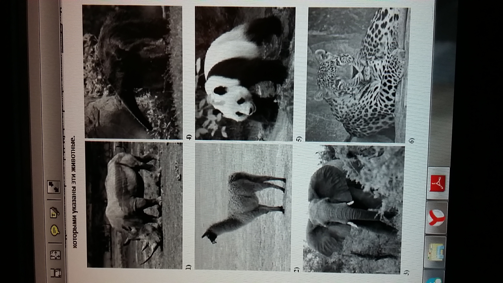 ниже представлены изображения животных. Какие три из этих животных обитают в естественной среде (не в зоопарке) на материке, выделенном на карте на предыдущей странице? Запиши НОМЕРА под которыми указаны эти животные.