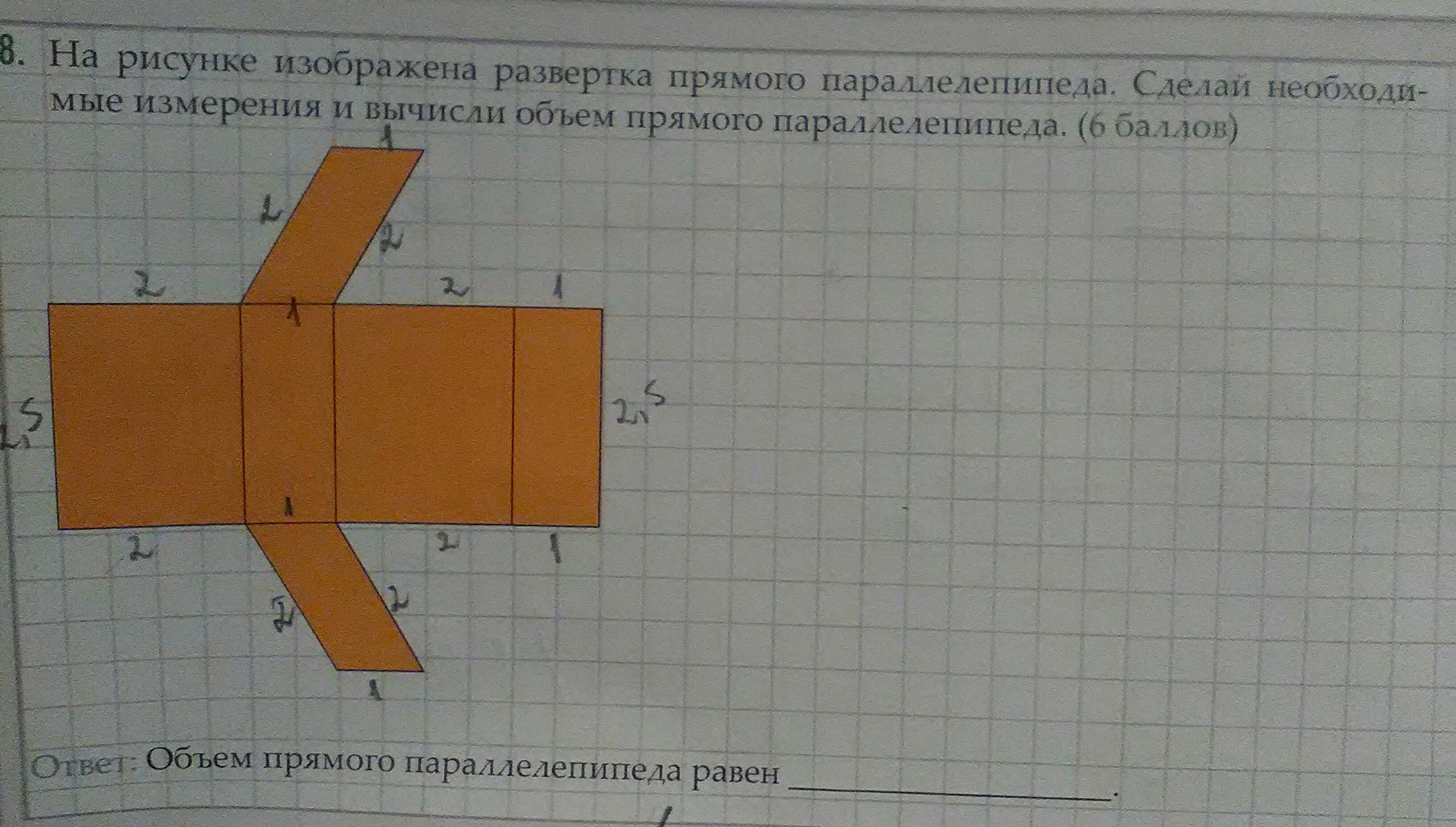 V=abc,V=2·2,5·1=5см³