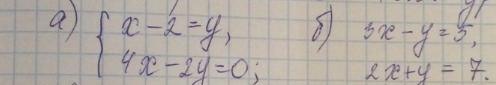 x-2=y |× 4<br />4x-2y=0 | × (-1)<br /><br />4x-4y=8. <br />-4x+2y=0 <br /><br />2y=8<br /><br />y=4<br /><br />Если есть вопросы, то задавай<br /><br />
