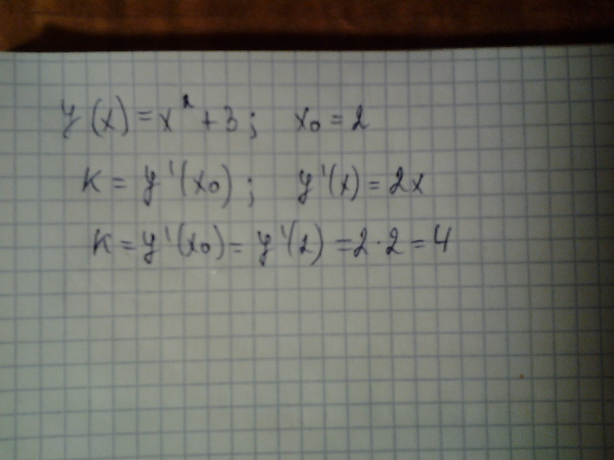 определите угловой коэффициент касательной к графику функции y(x) в точке с абцисой x0 если y=x2+3 x0=2