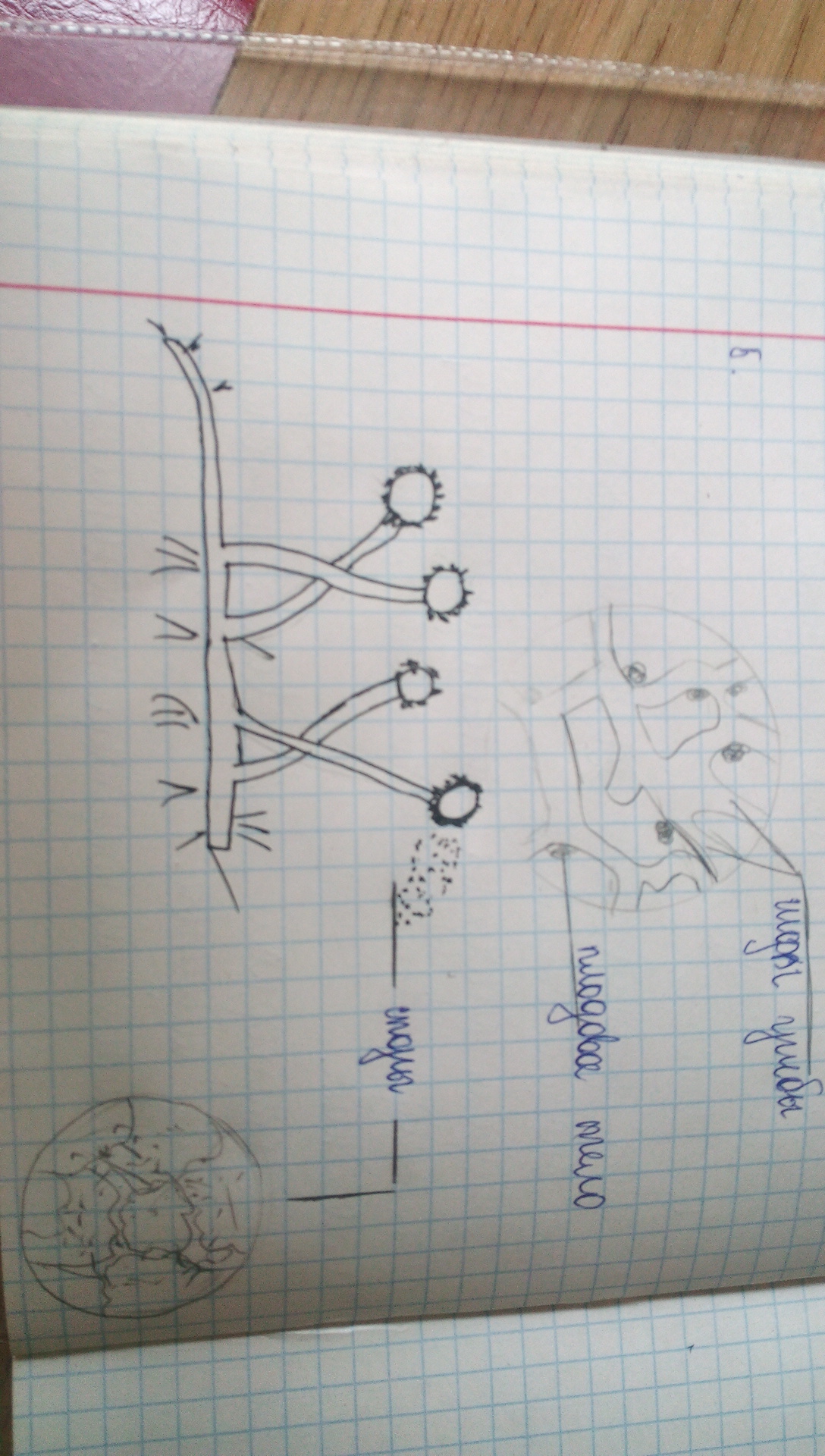 Рассмотрите при малом и большом увеличении гифы гриба, плодовое тело и споры. Отметьте окраску гиф и спор. Зарисуйте увиденное.