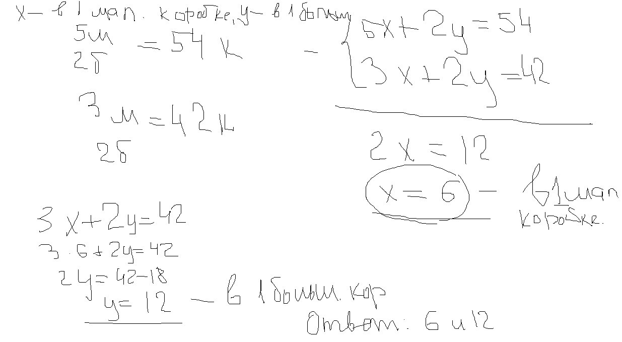 Пусть в маленькой коробке - х карандашей, а большой - у.
