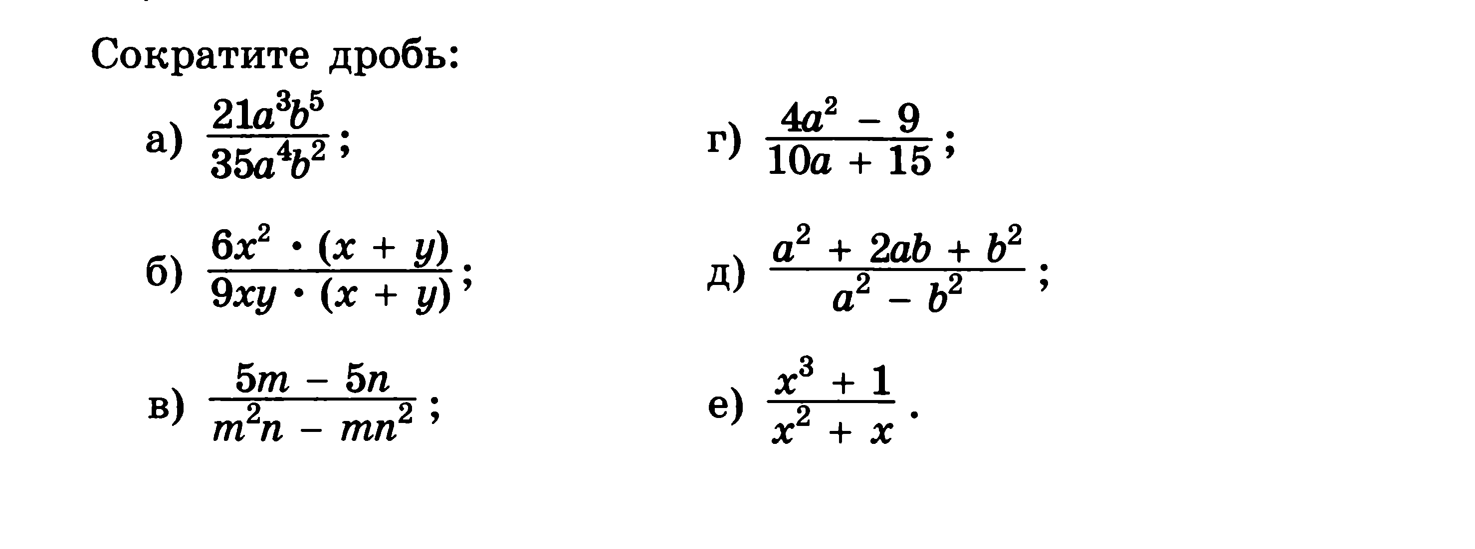 д)a^2 + 2ab + b^2/ a^2-b^2 = (a+b)^2 /(a-b)(a+b)= a+b / a-b