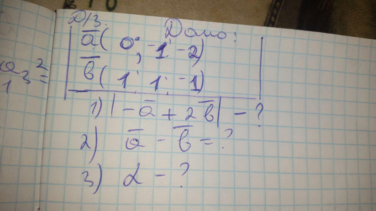 1) В первой задаче дан : Вектор а( 0,-1,-2) , вектор б(1,-1,-2)
